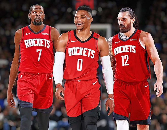 威少是完全自由球员,他在休赛期第一时间拒绝执行最后1年球员选项后试水自由市场,至今尚未敲定新东家,但这绝不意味着他的油箱里没油了!上赛季,威少在掘金队打得非常不错,出战75场常规赛,场均贡献11.1分+5篮板+4.5助攻+1.1抢断。尤其是首发出战的36场比赛中,威少3场贡献三双,8场得分超过20分,8场助攻数上双,这足以说明只要给威少机会,他依然能攻城拔寨串联球队。更关键的是,威少的健康和斗志是火箭队冲冠路上的必需品!退一万步讲,威少在经历了自由市场遇冷的现实后要求不会太高:底薪即可!