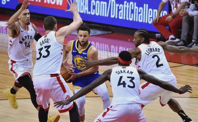 回想一下,被这样拼命击打,还能投出这样恐怖的三分球,库里的准头该有多猛。